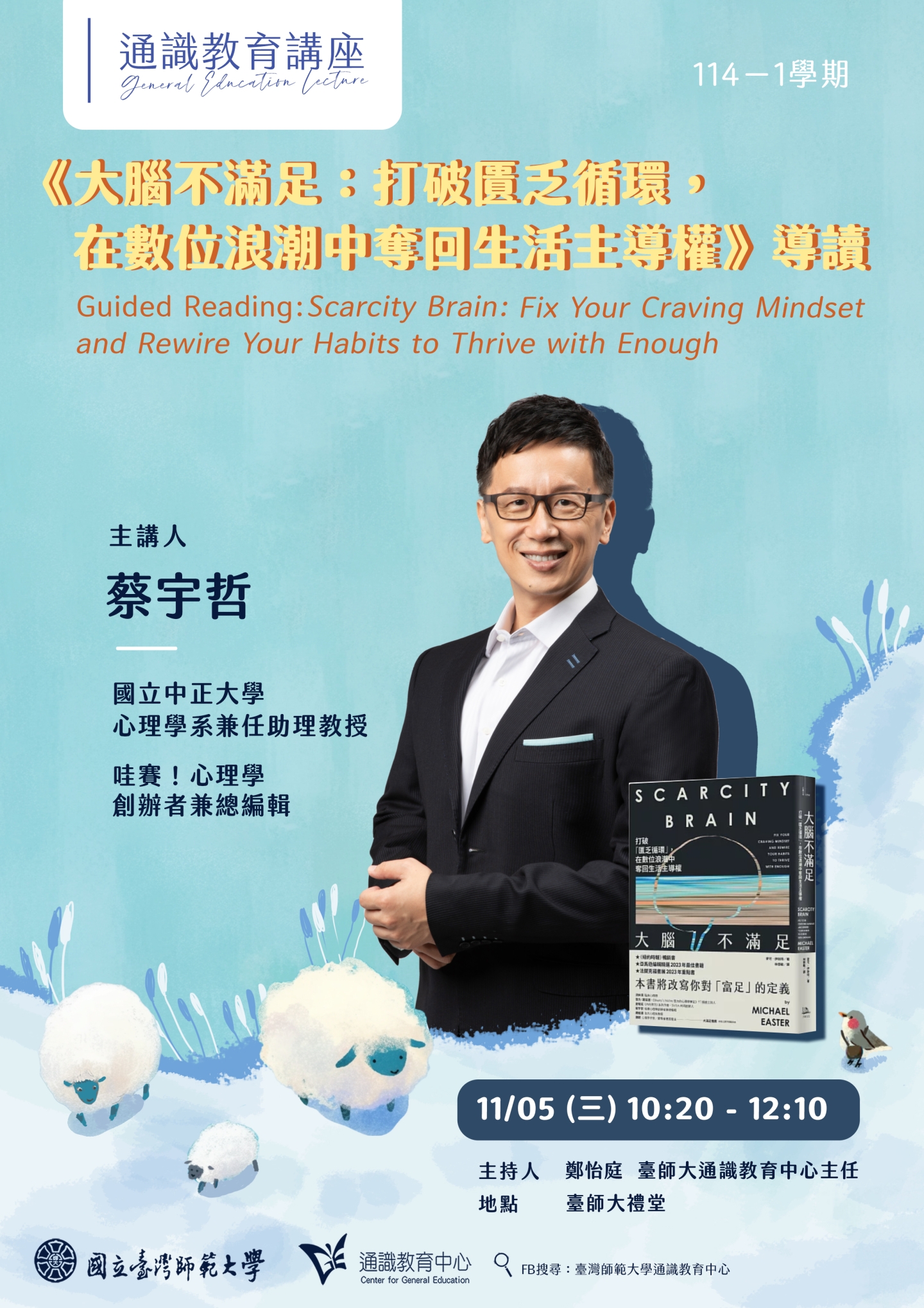 主講人|蔡宇哲 國立中正大學心理學系兼任助理教授/《哇賽心理學》創辦人兼總編輯,開創了Podcast與Youtube節目《哇賽心理學》、《睡眠先生的活力學》,跟大眾分享睡眠與心理學的奧妙之處,自2020年起連續三年入選 Apple Podcast 年度熱門與精選節目,並開設YouTube與線上課程,將心理學帶入生活每個角落。著有《好好休息》、《神奇的心理學》、《用心理學發現微幸福》等書,以「理性中帶溫暖,療癒中帶知識」為理念,陪伴大眾理解人心、調整心態、活出自在。