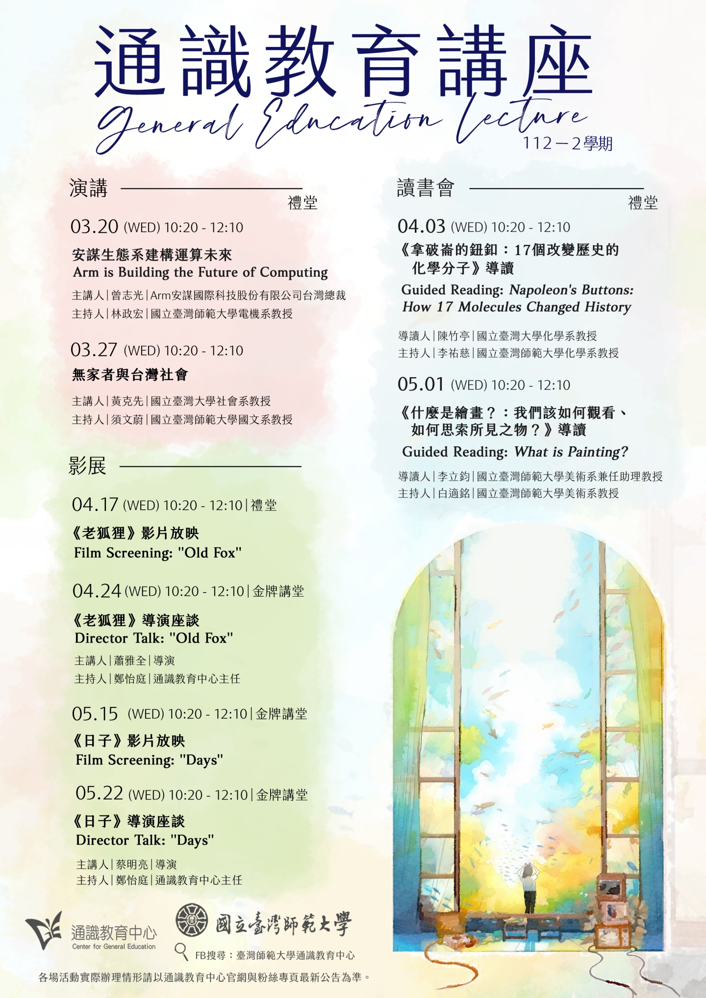 本學期,有一系列引人入勝的講座(演講、讀書會、影展),讓您在知識的冒險之旅中得到滿滿的能量。